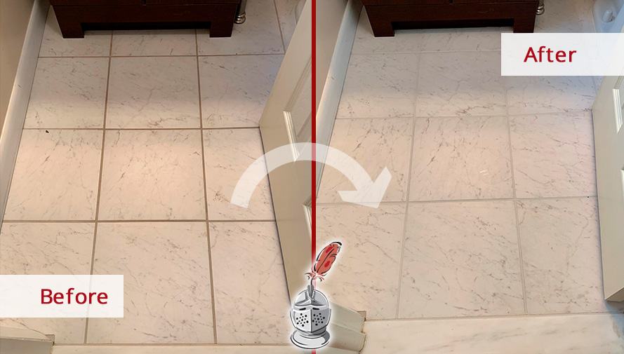 A homeowner from Alexandria, VA was struggling with the maintenance of her bathroom floor. Thankfully, she contacted Sir Grout and we saved the day once again. While performing regular cleaning, the owner noticed the grout lines looked dirty and unappealing. Despite her best efforts, she saw no improvements whatsoever. Determined to solve the problem, she tried some DIY methods she found online. She followed the instructions, but unfortunately, nothing worked.
